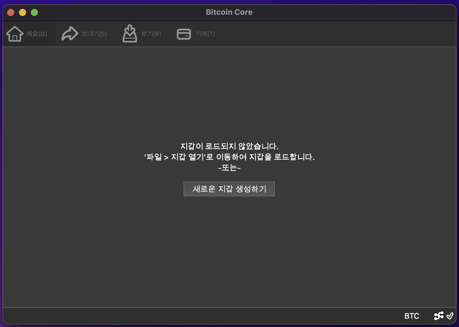 데이터 동기화가 완료되면 아래와 같이 지갑 생성화면