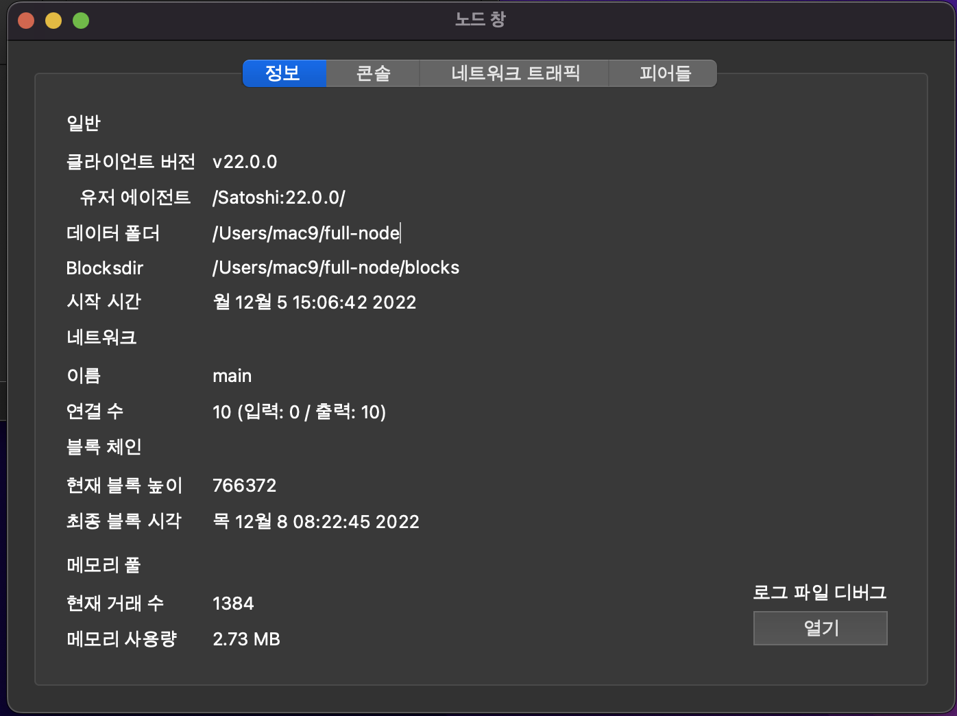 정보 탭에는 이런 정보들이 보여요