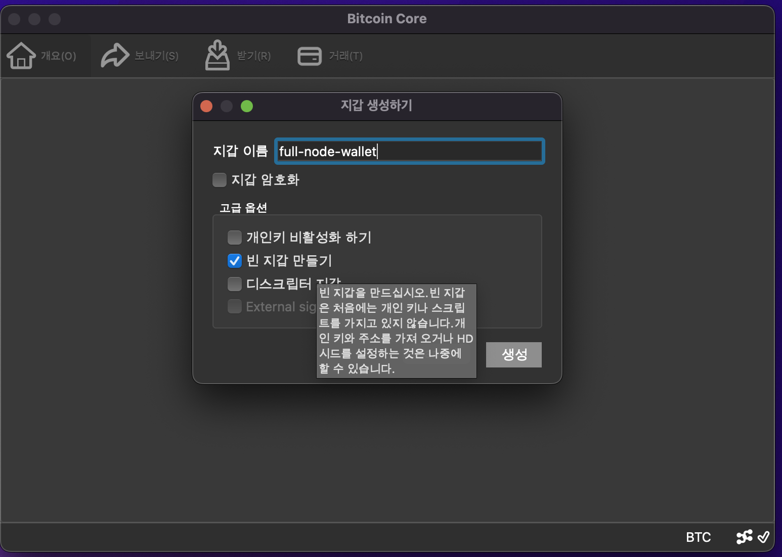 빈지갑 생성 후