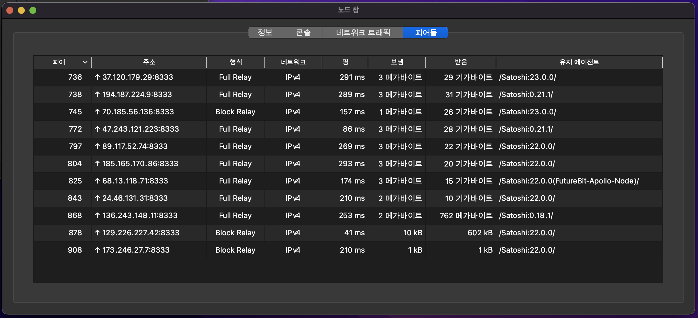 - bitnodes.io 에서 reachable node 로 인식되지는 않아요. 아쉽