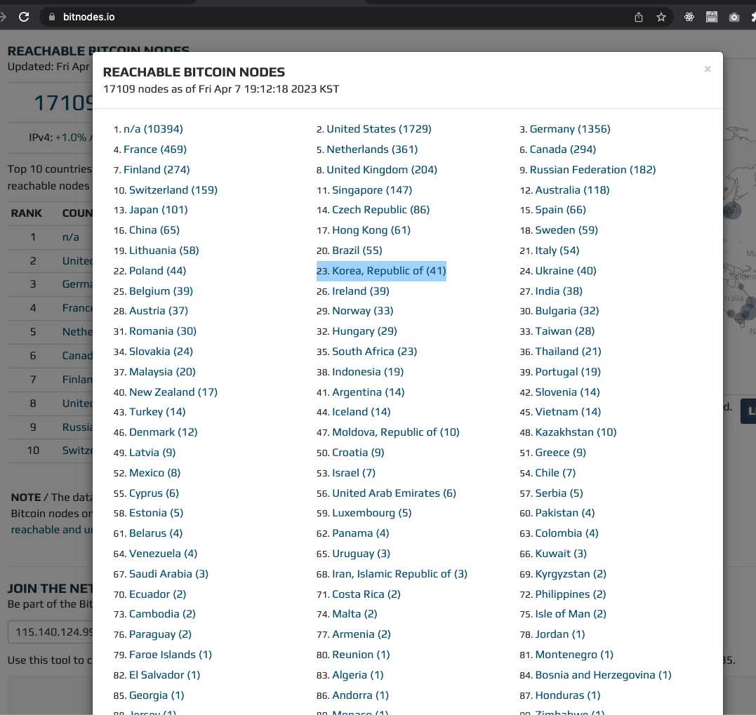 한국에는 현 시점에 접근가능한 노드가 41개 뿐이네요.