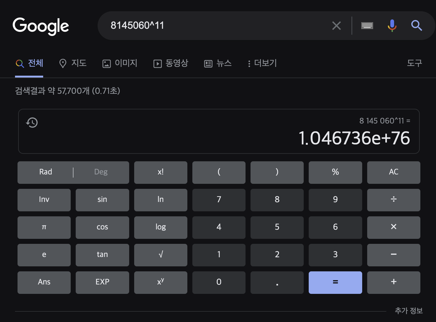 위 숫자는 1 뒤에 0 이 77개 따라오는 숫자다. 우주의 모든 별들의 개수와도 비교조차 안 된다.
