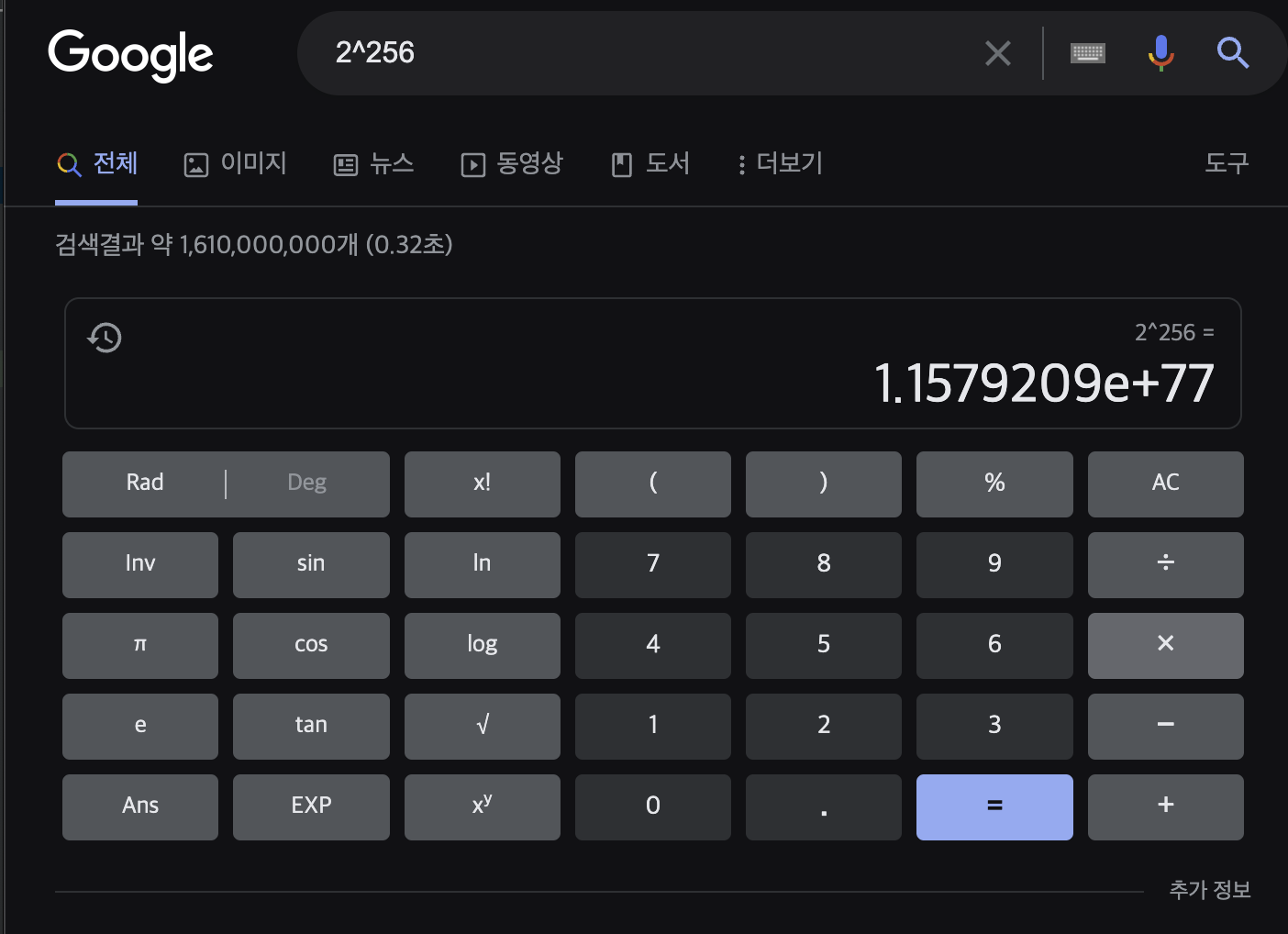 그렇다면 2^256 이란 수는 도대체 얼마나 큰 수일까.