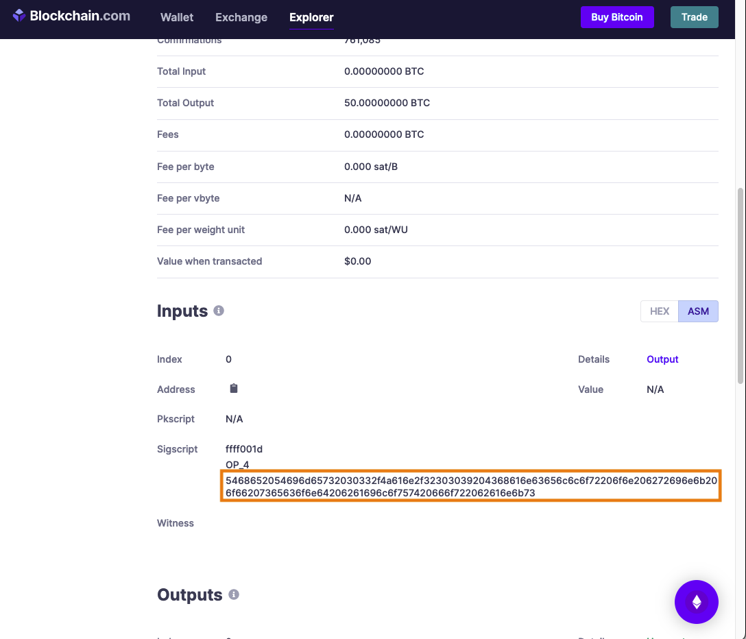 https://www.blockchain.com/btc/tx/4a5e1e4baab89f3a32518a88c31bc87f618f76673e2cc77ab2127b7afdeda33b