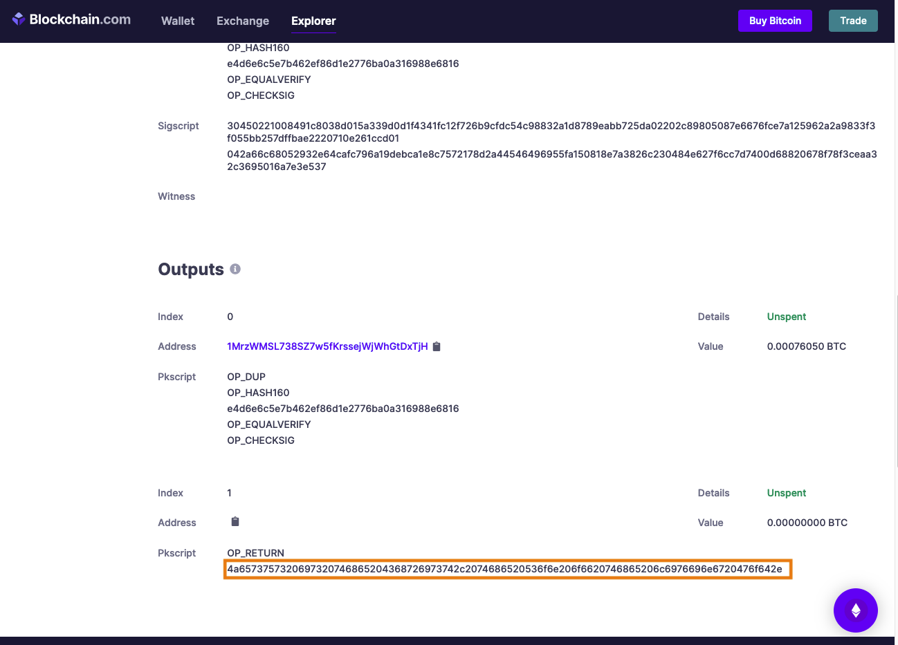 OP_RETURN 아래 hex 코드를 ascii 로 변환합니다.